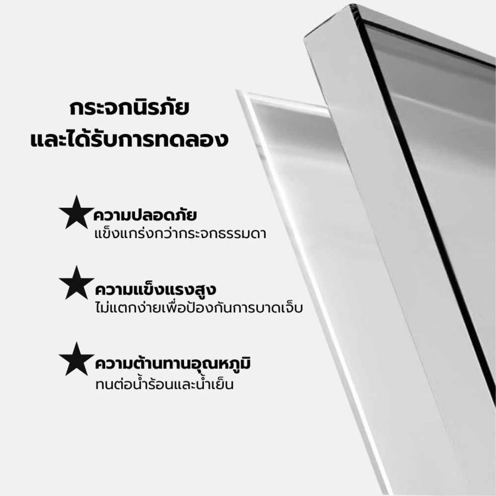 - กระจกผลิตจากกระจกนิรภัยหนา 6 มม ปลอดภัยในการใช้งาน
