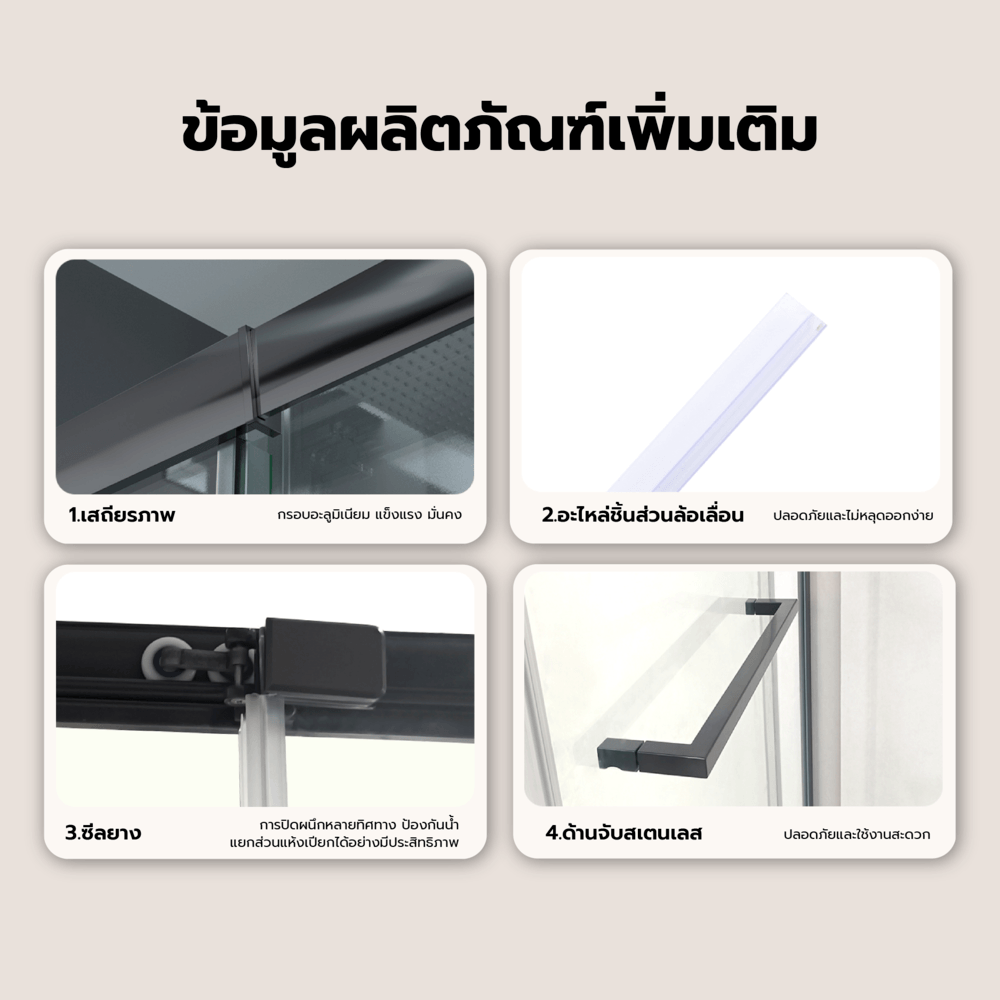 - กระจกนิรภัยหนา 6 มม. ให้ความแข็งแรงและความปลอดภัยในทุกการใช้งาน